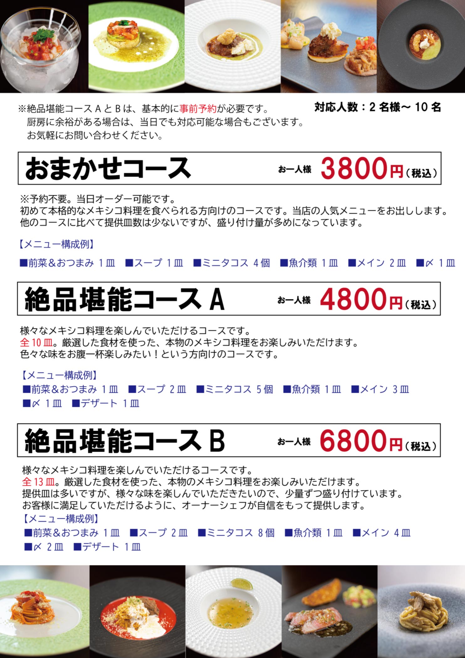 本格メキシコ料理のコースを3種類ご用意しています。
