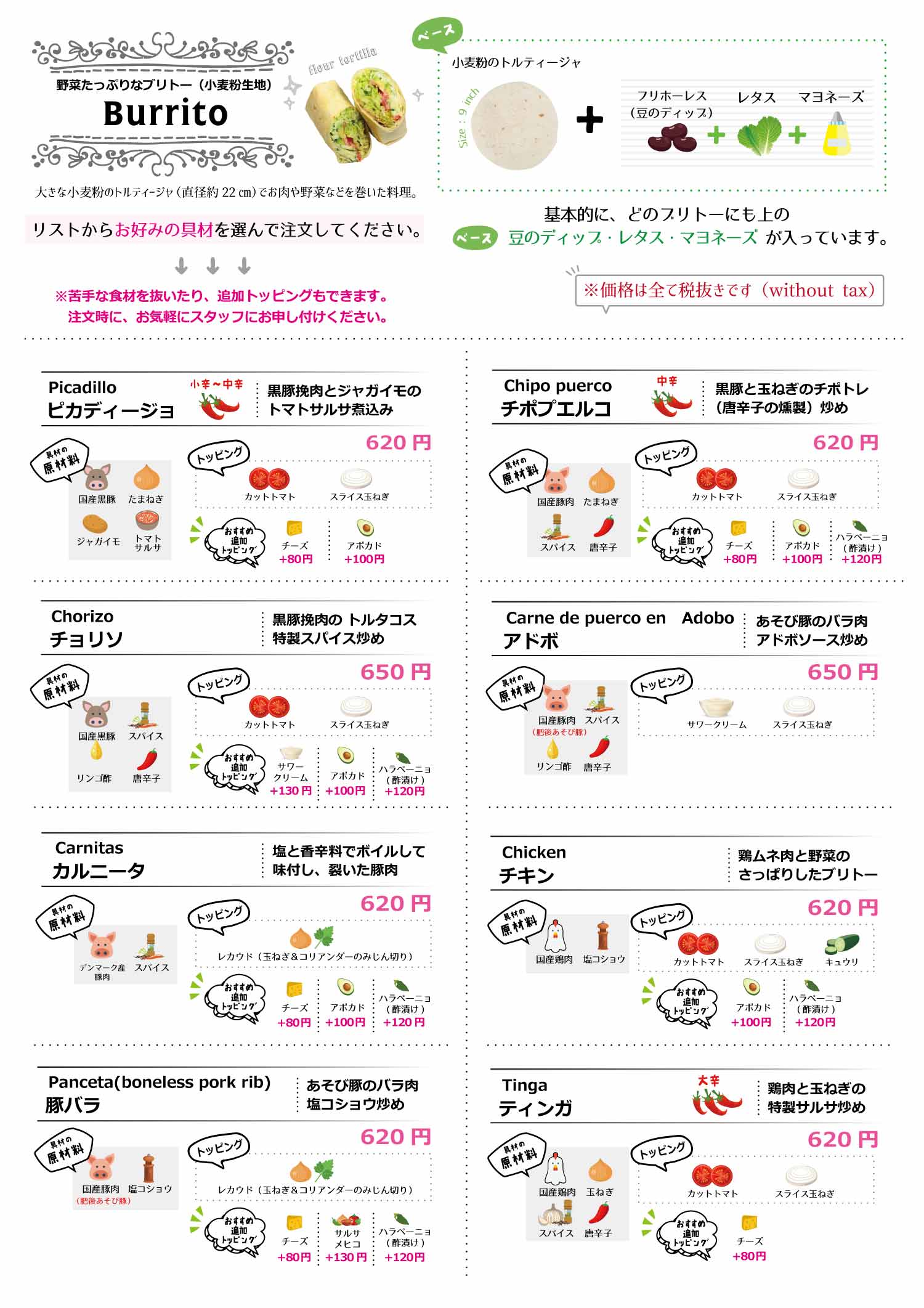 小麦粉の生地でタップリの野菜をベースに巻いたタコスです。